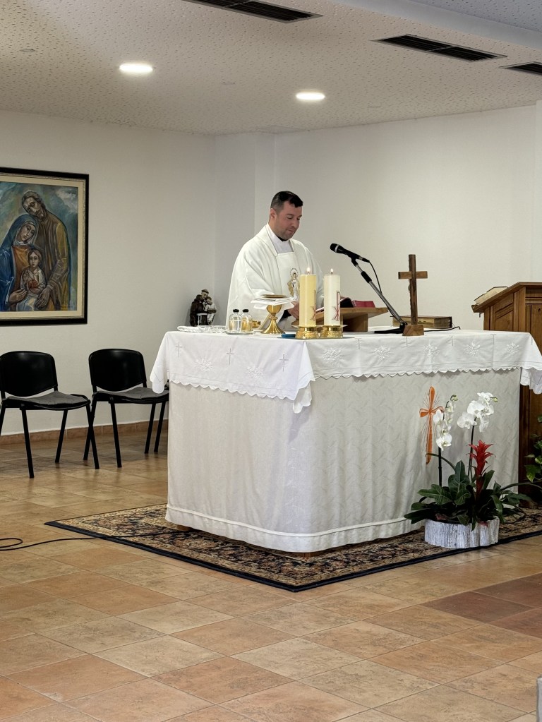 I like the rhythm here, the rhythm of the pilgrims coming here. We start off with Mass mid-morning and then the evening confessions and Rosary while confessions are happening and then another evening Mass where many pilgrims come while confessions are also offered and then adoration after. That rhythm of prayer that’s so powerful and so good is very impactful, and it’s been really refreshing.